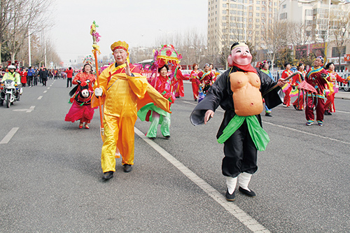3月2日上午,我市第十六届月湖文化艺术节开幕式暨2018年元宵节秧歌巡游正式拉开帷幕。全市12个镇(街)的34支秧歌队近千人参与演出。火红的衣裳、喜庆的锣鼓、飞舞的双龙、腾跃的狮子、憨态可掬的跑驴、轻快洒脱的跑旱船、整齐划一的舞扇等独具特色的精彩表演,为元宵佳节增添了无尽的色彩,最大限度展示老百姓的快乐生活,真正体现“乐在莱西”。(刘笑伶 杜茜)