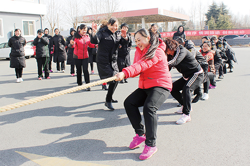 3月6日,为庆祝“三八”国际劳动妇女节,交运莱西事业部组织女职工们进行了精彩的健身比赛,现场加油喝彩声此起彼伏。(徐亚晓)