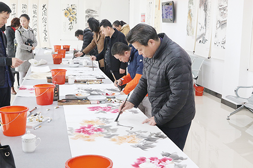 3月8日,我市部分书画家在文化中心文化馆挥毫泼墨,共同庆祝“三八”国际劳动妇女节。(董建君)
