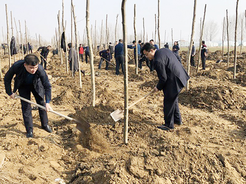 店埠镇组织机关干部、村两委成员在兴店路北延段东侧参加义务植树活动。此次活动共栽种法国梧桐1500余棵。(王丽珠)