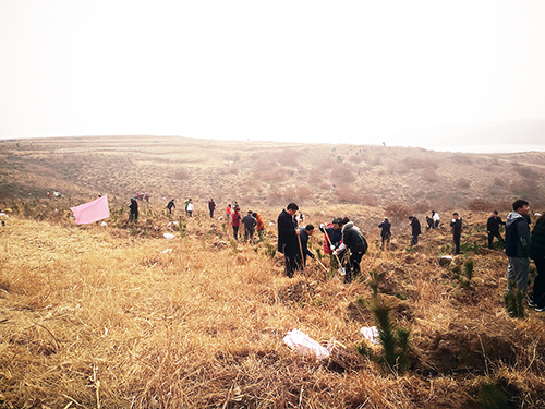 3月11日,南墅镇全体机关干部、农村党员干部及萌山村村民共200余人参加植树活动,种植树木达10000余棵,其中黑松8000余棵、板栗2000余棵。(王兆飞)