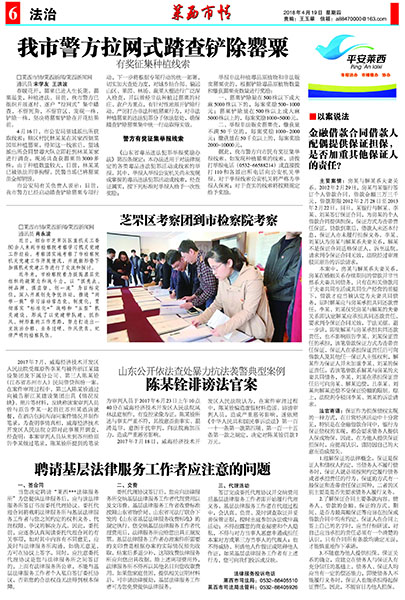 □莱西市情/莱西新闻/莱西新闻网 记者 杜茜 4月18日,市人大常委会副主任王志强带领执法...