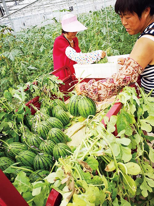昨日,记者走进山后人家青年创业农场的高效果蔬大棚内, 瓜农正在悬空的西瓜秧上,采摘着一个个成熟的小西瓜,“别看它个头小,吃起来却相当甜。”瓜农魏立德说,这是2K红玉西瓜,当前正值采摘季,均重量只有3-4斤,因其小巧玲珑、皮薄肉厚、口感佳等特点,不仅深受当地客商的喜爱,还销往青岛、潍坊等地。