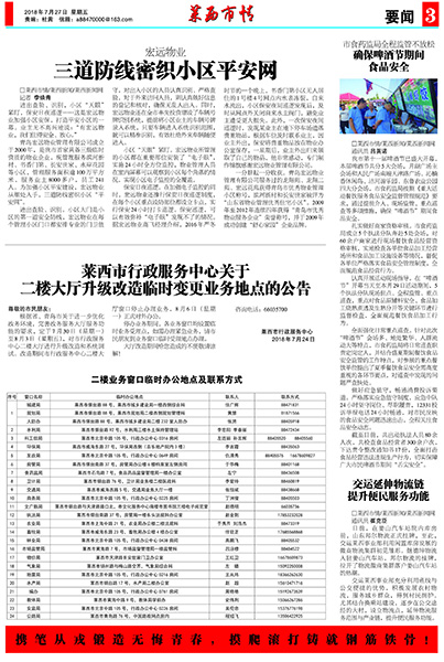 □莱西市情/莱西新闻/莱西新闻网 记者 葛虹虹 7月15日-20日...