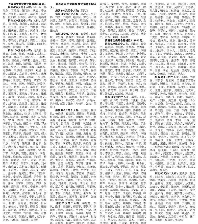 全市“慈善一日捐”公示(第三期)