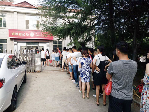 据市婚姻登记处统计,“七夕”当天共有121对新人登记结婚。