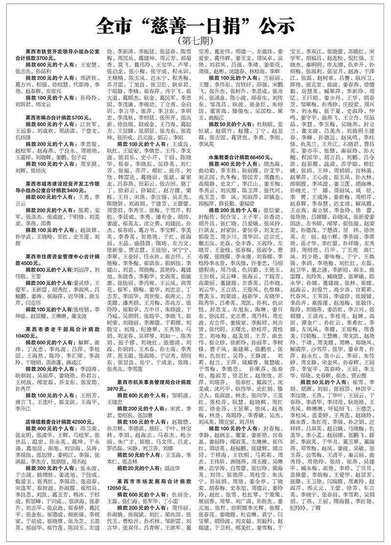 全市“慈善一日捐”公示 (第七期)