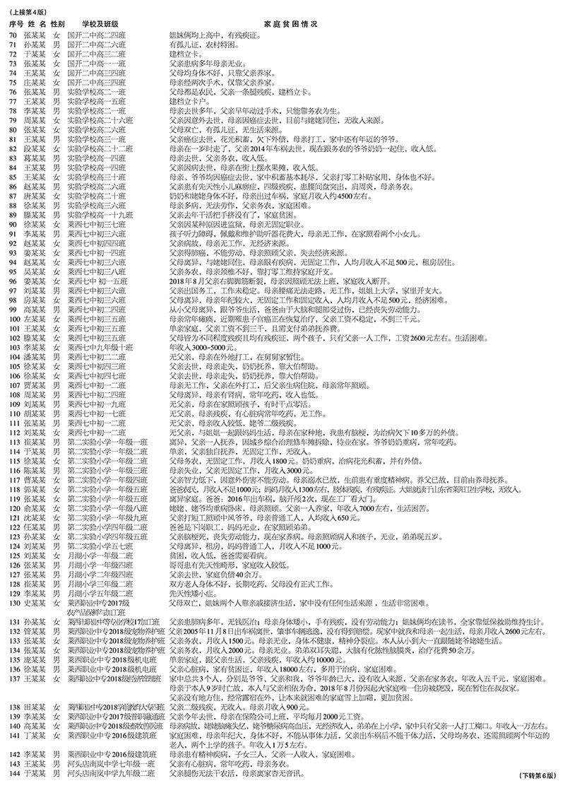 莱西市2018年度爱心助学部分帮扶对象名单