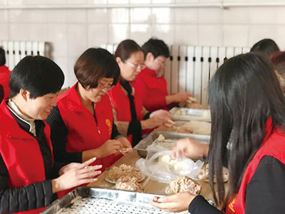 华商·安康会业主走进欣颐养老院,与老人们一起包饺子,并表演了丰富多彩的节目,现场其乐融融。(高欢欢)