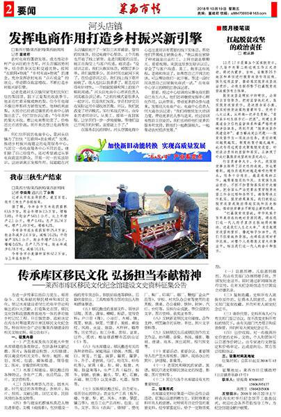 □莱西市情/莱西新闻/莱西新闻网 记者 高欢欢 10月18日,市政协主席邹学新,副主...