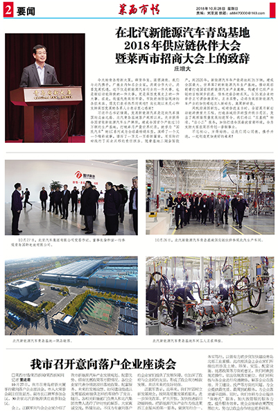 北汽新能源汽车青岛基地2018年供应链伙伴大会暨莱西市招商大会举行