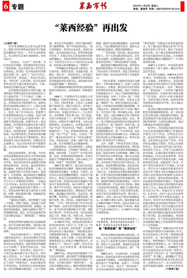 编者按:1月4日,《青岛日报》一版头条报道了青岛、莱西两级继承和发扬“莱西会议&rdqu...