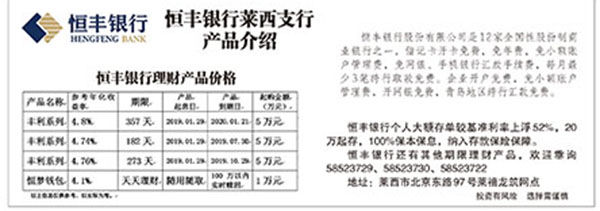 恒丰银行莱西支行 产品介绍