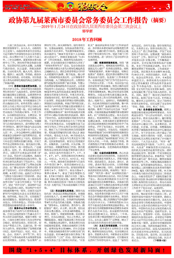 新时代,凝心聚力共谋发展大计;新征程,砥砺奋进同谱锦绣新篇。昨日,政协第九届莱西市委员会第三次会...