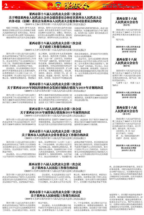 不辱使命,不负重托。1月27日,莱西市第十八届人民代表大会第三次会议圆满完成各项议程,胜利闭幕。...