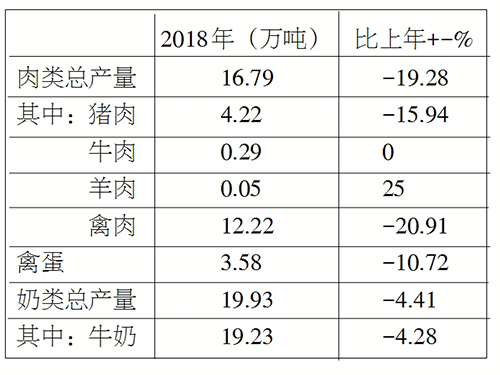 全市畜牧业增加值完成22.39亿元,比上年增长4.5%。大牲畜年末存栏8.4万头,比年初增长3.19%,其中奶牛6.3万头,比年初减少3.08%;生猪年末存栏32.5万头,比年初下降18.14%;家禽出栏8150.79万只,比上年下降19.82%。肉类总产量16.79万吨,比上年减少19.28%。禽蛋总产量3.58万吨,比上年下降10.72%。奶类总产量19.93万吨,比上年下降4.41%。