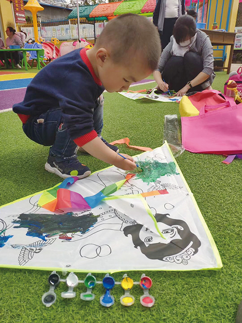 幼儿园的小朋友们用亲手制作的花束、自己绘画的风筝向母亲传达节日祝福。