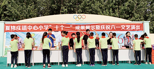 日前,夏格庄镇庆“六一”文艺汇演暨爱心捐赠活动在中心小学举行,青岛点石文具用品有限公司等7家爱心企业为学校捐赠了文具用品和现金,助力教育事业蓬勃发展。 (高欢欢)