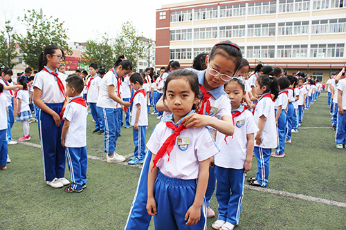 近日,市第二实验小学举行“童心永向党 追梦新时代”主题队日暨一年级新生入队仪式。一年级495名同学戴上鲜艳的红领巾,在响亮而坚定的宣誓声,光荣地加入了中国少年先锋队,成了一名少先队员。