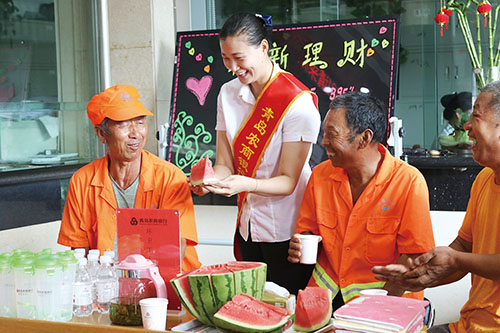 踊跃参与文明城市建设。参加文明城市建设,农商银行责无旁贷。该行通过营业网点显示屏24小时滚动播放“讲文明树新风”活动的公益广告,营造浓厚创城氛围。主动在38个营业网点设立环卫工人休息驿站,邀请环卫工人到网点避暑纳凉。响应政府号召,组织30余名青年志愿者积极开展献血活动,无私奉献爱心。积极赞助莱西市首届月湖书画名家作品展、南岚韩埠甜瓜文化艺术节、店埠胡萝卜文化节,支持文旅事业发展。为沽河街道办事处郭旺庄村委实现乡村振兴提供资金支持,帮助村庄实现发展。莱西支行的这些担当得到社会各界的认可和肯定,也擦亮了“青农商行”这块金字招牌。该行先后被授予莱西市养老服务特殊贡献单位、莱西市工会工作先进单位、莱西市文明单位、山东省服务县域发展示范单位。