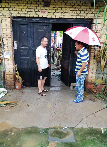 马连庄镇全面研究部署防台风工作,全体机关干部和村干部连续48小时值班,不间断对隐患进行排查处置,顺利度过台风期。图为工作人员到高家草泊村走访查看群众房屋。