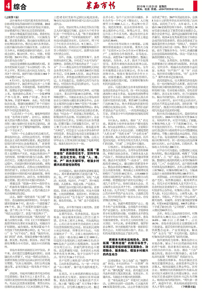 编者按:11月20日,大众日报一版头条刊登了长篇通讯《党旗引领“三融合”...