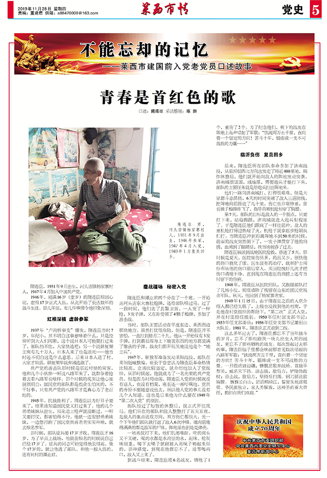 记者 葛虹虹 11月27日,我市与青岛银行确立为党建共建单位,并在市行政办公中心签订了《助...