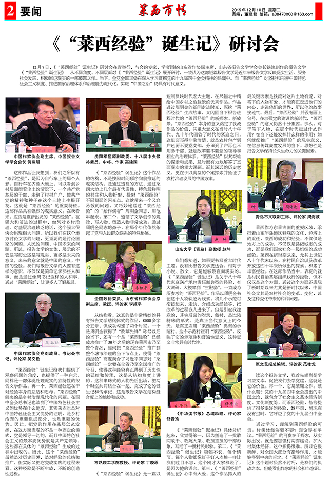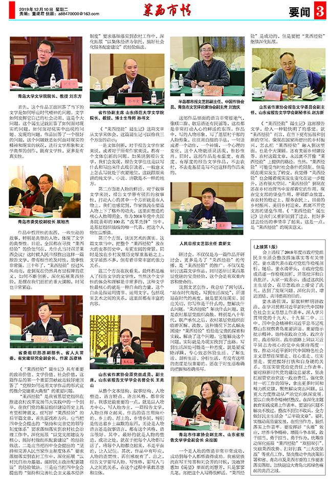 记者 董建君 12月7日,来自国内的三十多位知名专家学者相聚青岛,围绕山东省作协副主席、山...