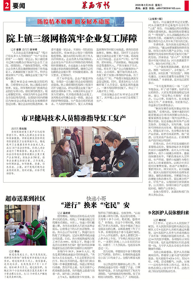 记者 张京帅 2月22日上午,市委书记、市新型冠状病毒肺炎疫情防控指挥部总指挥庄增大督导检...