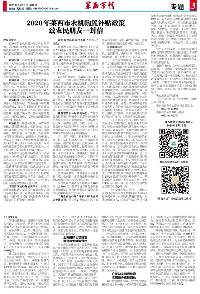 记者 董建君 3 月25日,青岛市委派驻莱西市服务企业工作队队长、青岛市政协副主席李众民一...