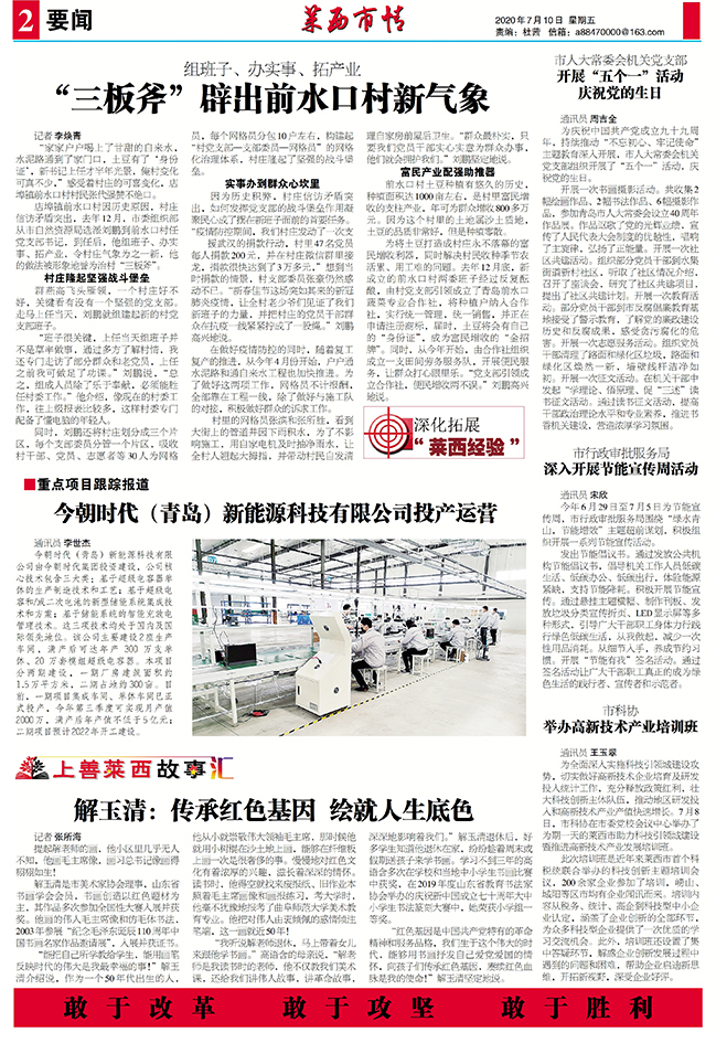 通讯员 郝龙荣 2020年我市获批青岛橡六胶管有限公司、青岛国轩电池有限公司、永隆高新科技...