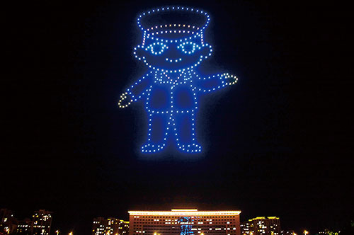 夜幕降临,广大市民在欣赏了由青岛航院组织的《乐享·云端》《爱在蓝天》等精彩节目表演以后,300架无人机依次在人民广场的上空升起,用它们绚烂的灯光和无穷的变化,以天为幕,以城为景,勾勒出最美莱西、空中客机、美丽空乘、帅气机长等璀璨图案,用科技的力量点亮莱西夜空。