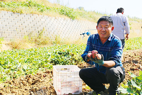 “多亏政府和五矿勘查开发有限公司对俺的150多亩地进行整治,现在不仅可以机械收种,遇到天旱,拧开地头的水龙头就可灌溉农田。你看看俺这红薯长的,少说一亩地产3000斤,按照和外贸公司定的价格算,亩收入6000元没问题,今年仅红薯就能收入48万元。”10月8日,南墅镇河里吴家村农民吴云琳看着一个个长得喜人的红薯,喜滋滋地和记者说起了他的致富路。
