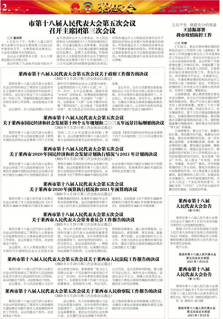 1月23日,莱西市第十八届...