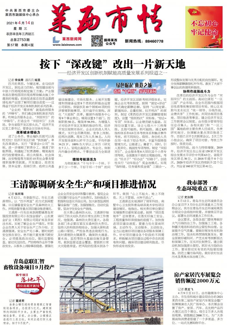 王清源还实地调研了领军科技、南墅中心卫生院和青岛绿泽美术学校项目建设情况。他指出,相关责任单位要切实增强责任感和紧迫感,按照“项目落地年”总体要求,在落实好施工安全、工程质量和环保措施的前提下,加快推进项目建设速度。要着力优化营商环境,主动作为、主动服务、主动担当,全力以赴做好项目建设各项服务保障工作,针对项目建设各个阶段的不同需求,积极解决项目建设过程中存在的困难和问题,确保项目建设顺利推进,尽快形成有效投资。