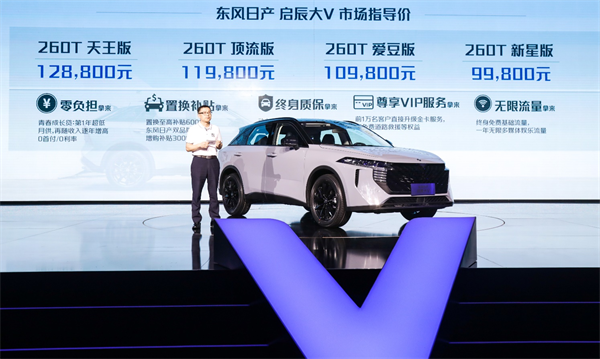 9月27日,东风日产年启辰大V正式上市,新车共推出四个版本,售价区间为9.98万元——12.88万元。