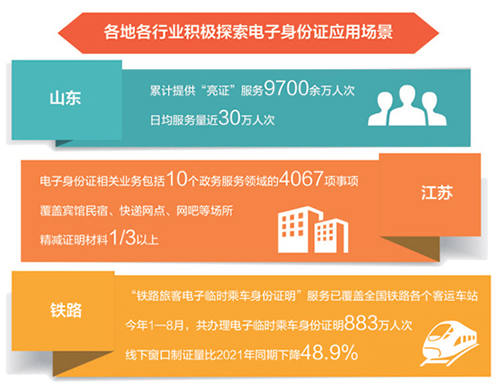 党的二十大报告提出,加快建设网络强国、数字中国。推广居民身份证电子证照应用是建设数字中国、提高政务服务能力的重要举措。近年来,为提升便民服务水平,各地各行业大力推动电子身份证在金融、教育、医疗、社保、税务等多种场景下的应用,为群众带来更加便利的数字生活。