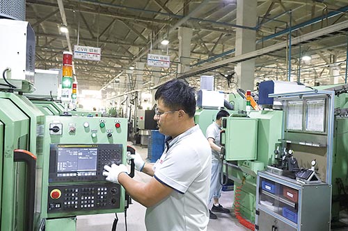 青岛吉明美机械制造有限公司生产车间里,10余名工人穿梭在数控车床前查看显示屏数据和产品加工状态,切削机器自动化手臂来回送待检成品件。…