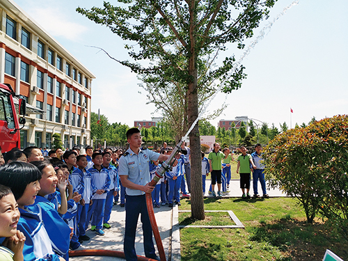 5月28日,市消防大队消防员开着消防车来到城东小学校园,教给孩子们如何报警、如何自救自护等小知识,现场讲解了消防车的功能、水带、水枪、分水器、转换接口的使用和作用,并演示了空呼器、风力灭火器的使用方法。