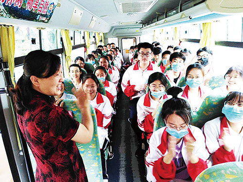 入考场前老师的鼓励。