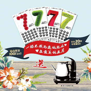 一场不期而遇的邂逅,在最美的五月。体彩顶呱刮新票“7”在我省上市啦,最高100万元的头奖,自动上水壶、即开票等好礼也如“7” 而至,惊喜多多等…