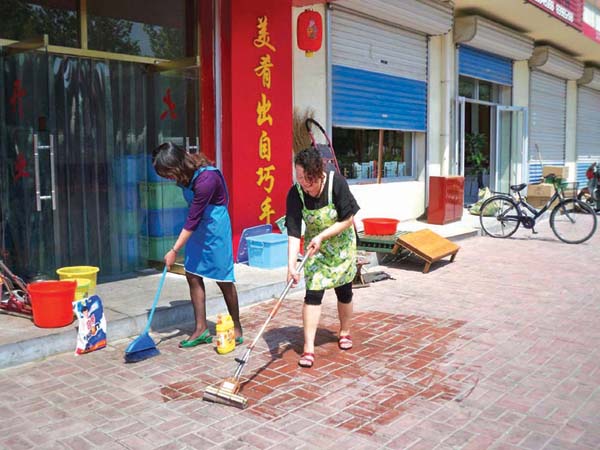 个体商户清理门前卫生