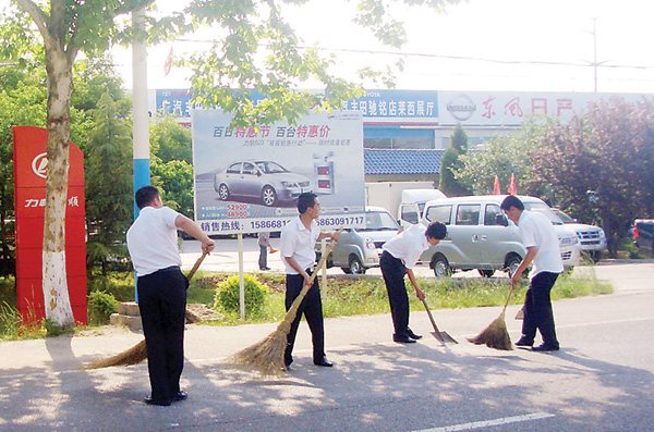 日前,神龙潮汽车销售有限公司组织了30余名职工对青岛路北端进行集中清理,并把每周二定为集中清理活动日。