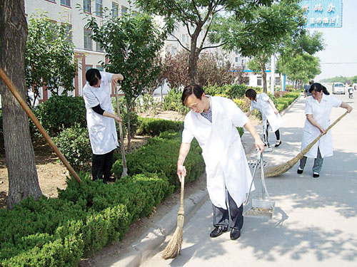 日前,记者在重庆路看到,欣颐爱心护理院的工作人员正在清扫路边和绿化带内的垃圾。护理院负责人告诉记者,现在全市范围内正在进行环境卫生综合整治大行动,作为城市的一分子,我们也应该出一份力,将我们的城市打扮得更靓丽。(刘洋)