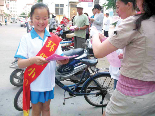 近日,笔者在振华街看到水集中心小学的“环保小卫士”身披授带,通过向市民发放倡议书、展示环保书画、环保手抄报等形式,积极开展环保卫生宣传教育活动,号召社会群众积极行动起来,保护碧水蓝天,保护我们共有的家园。 据悉,自6月份开始,团市委、市少工委在全市少先队中组织开展了“红领巾让莱西更美丽”环境卫生整治主题教育活动。截至目前,全市4万余名少先队员参与到环境卫生整治活动中来,发放倡议书10000余份,清理校园内外垃圾100余处,办校园宣传栏200余期,环保卫生教育手抄报5000余份。 (曲艺)