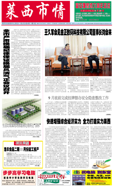 8月17日,市委书记王久军在市行政办公中心会见了来访的东莞市金正数码科技有限公司董事...