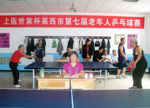 为了让老年朋友们以球会友,交流感情,享受快乐,增强体质,丰富老年人的业余文化生活,日前,为期两天的上医世家杯莱西市第七届老年人乒乓球赛在市老年体协成功举办。来自全市的100多名运动员参加男女单打项目的比赛。 (刘斌)