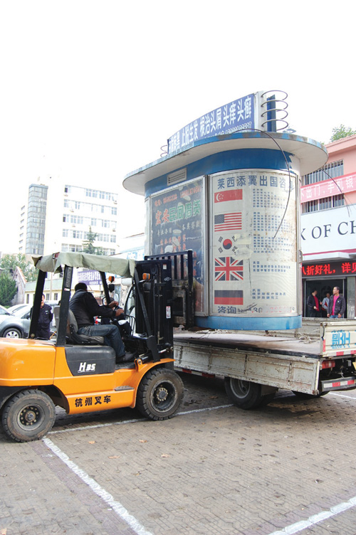为加大城区环境视觉污染整治力度,10月20日,由市城管执法局牵头,对城区占路亭体进行了集中拆除。此次主要拆除交警大队门前、安居小区等处占路及乱搭乱建亭体共6处。据介绍,目前城区共有路边报亭30余处,其中11处已无人经营,城管部门将于近日对其进行集中拆除。 (蓓蓓)