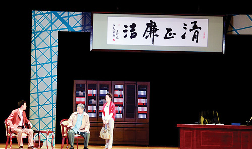 10月25日下午,大型反腐倡廉吕剧《钟声》在市委党校会议中心举行首演式。省文化厅厅长亢清泉,省纪委副厅级巡视员杨方臣,青岛市委常委、纪委书记何建平,青岛市纪委常务副书记、监察局局长杨宏钧,青岛市委宣传部副部长、文广新局局长姜正轩,青岛市纪委常委、监察局副局长孙宗子,青岛市各区市纪委书记,我市全体市级领导,各镇(街道、经济开发区)和市直各单位主要负责人及相关人员观看了演出。