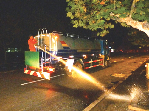对烟台路、上海路、北京路等主干道每周高压清洗一次。为避开交通高峰,从人性化管理角度出发,清洗作业从22时开始,利用夜间人车相对稀少的机会,按照先主路面、后人行道面的顺序进行,清洗过程中,做到路面整洁、无沉积泥尘、道路隔离设施底部无散乱垃圾和明显尘土。冲洗后的道路,一个小时左右就会干透,为市民第二天的出行创造了一个整洁清新的环境。 (徐绍华 高鹰)